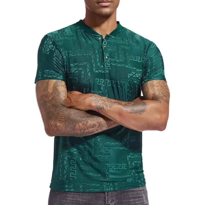 Elevate your casual wardrobe with this Men's Casual Jacquard Stretch Henley T-Shirt, designed for both style and comfort. Whether you're pairing it with jeans, chinos, or shorts, this versatile piece is perfect for any occasion.