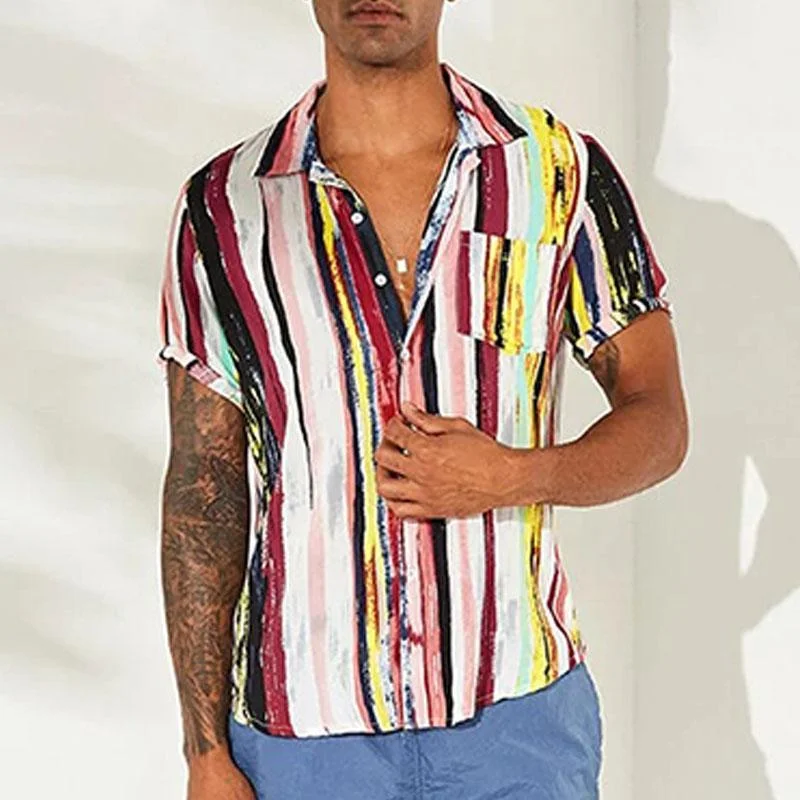 Men’s casual loose striped printed short sleeve shirt are crafted from cotton blend that is breathable and thin for all day comfort. The fabric is specially treated to feel velvety soft and the lightweight fabric will keep you looking great all day no matter how active you are.