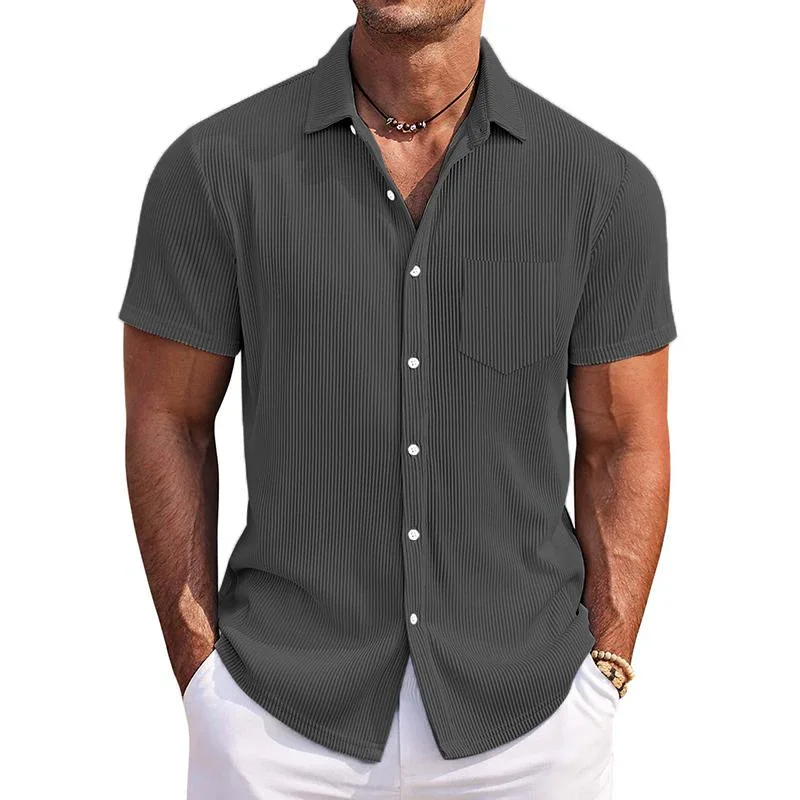 Elevate your casual style with our Men's Casual Solid Color Corduroy Lapel Patch Pocket Loose Short Sleeve Shirt. With its comfortable fabric and classic design, it's sure to become a go-to staple in your everyday rotation.