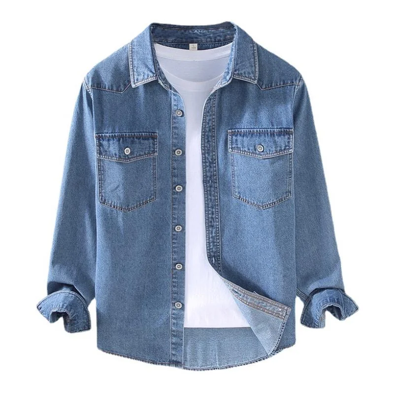Flap Pockets: Equipped with two functional flap pockets on the chest, offering a classic denim shirt look and practical storage for small essentials.