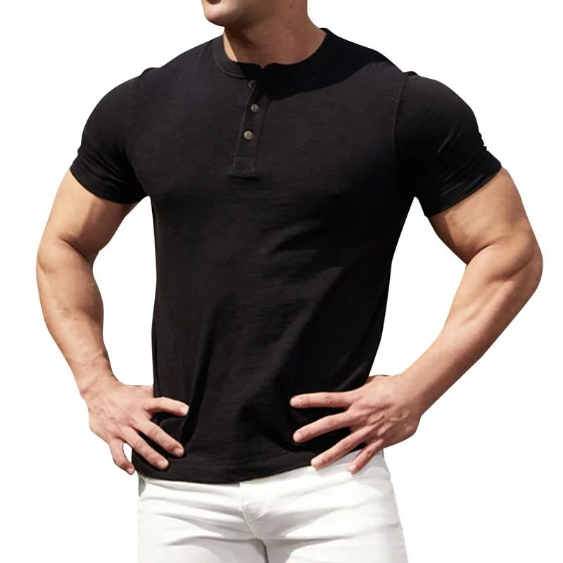 Men's Henley Collar Solid Short Sleeve Solid T-shirt 31601818Z