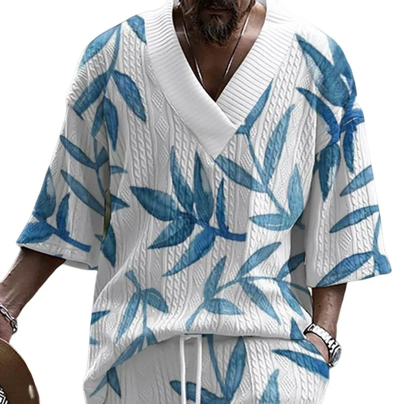 Men's Jacquard V-neck Printed Loose Hawaiian T-shirt