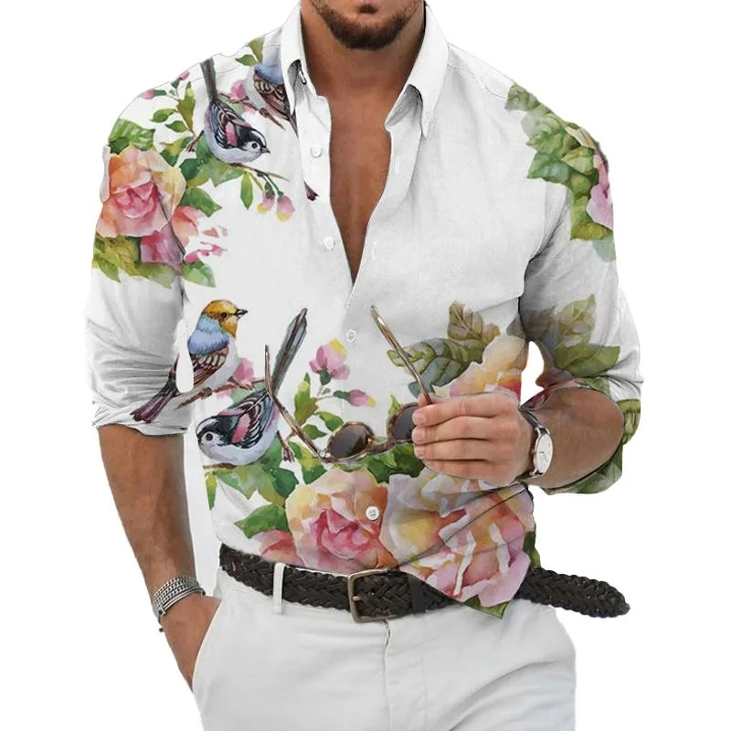 Drawing inspiration from the delicate intricacies of flowers and the graceful flight of birds, our designers crafted this shirt to reflect the peaceful coexistence of these elements. The floral and bird patterns adorn the lapel and sleeves, adding a touch of whimsy and sophistication.