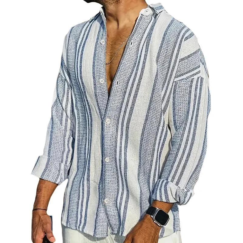 - Sleeve Design: This shirt has long sleeves to keep you comfortable in any season. The exquisite striped pattern adds a touch of fashion and personality to the overall look, making you the focus of the crowd.