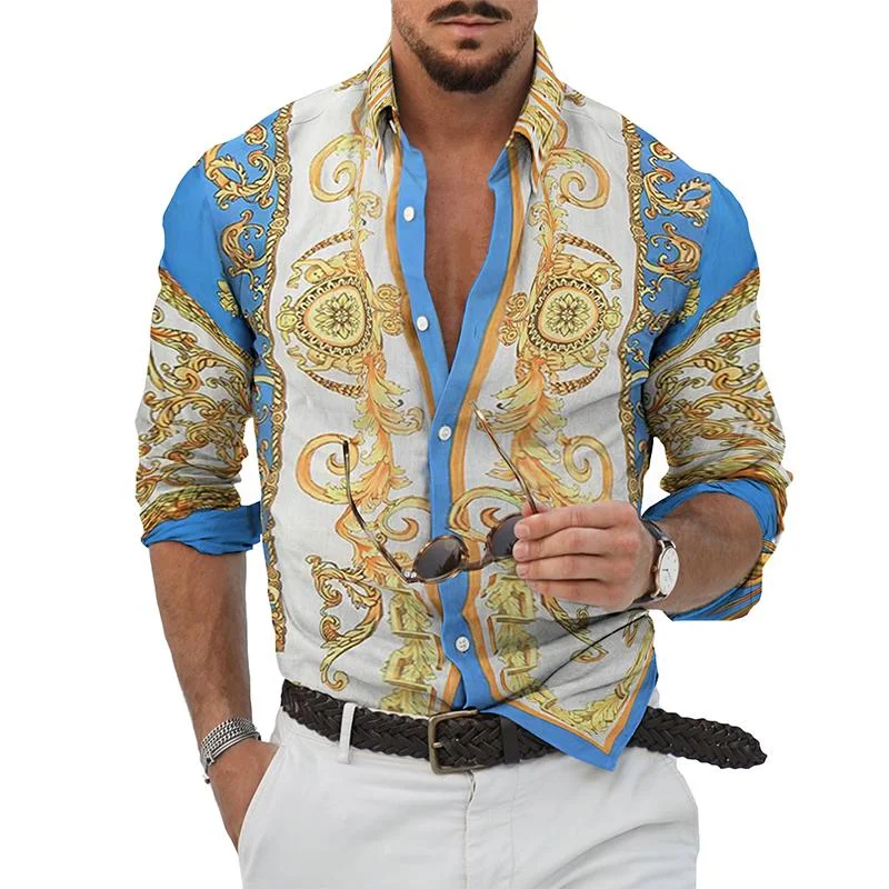 This luxurious baroque lapel long sleeve shirt is a stunning fashion choice. Its design is inspired by Baroque art style, blending elegance and splendor.