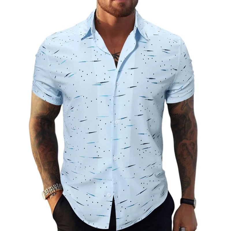 Embrace the summer vibes with our Men's Printed Lapel Short Sleeve Beach Shirt, designed for both style and comfort.
