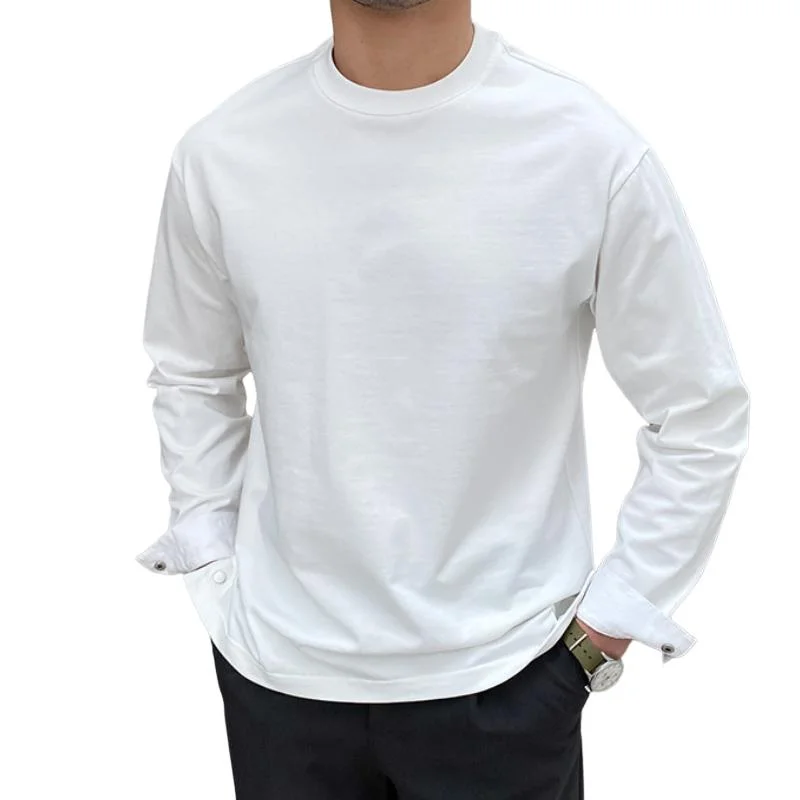 Another major feature of this men's round-neck long-sleeved T-shirt is its advantage of being suitable for all seasons. In spring and autumn, it can be worn alone or with a light jacket; in winter, it can be used as an inner layer with a thick jacket to effectively resist the cold wind. In addition, in the mornings and evenings of summer, long-sleeved T-shirts can also prevent mosquito bites and damage caused by direct sunlight.