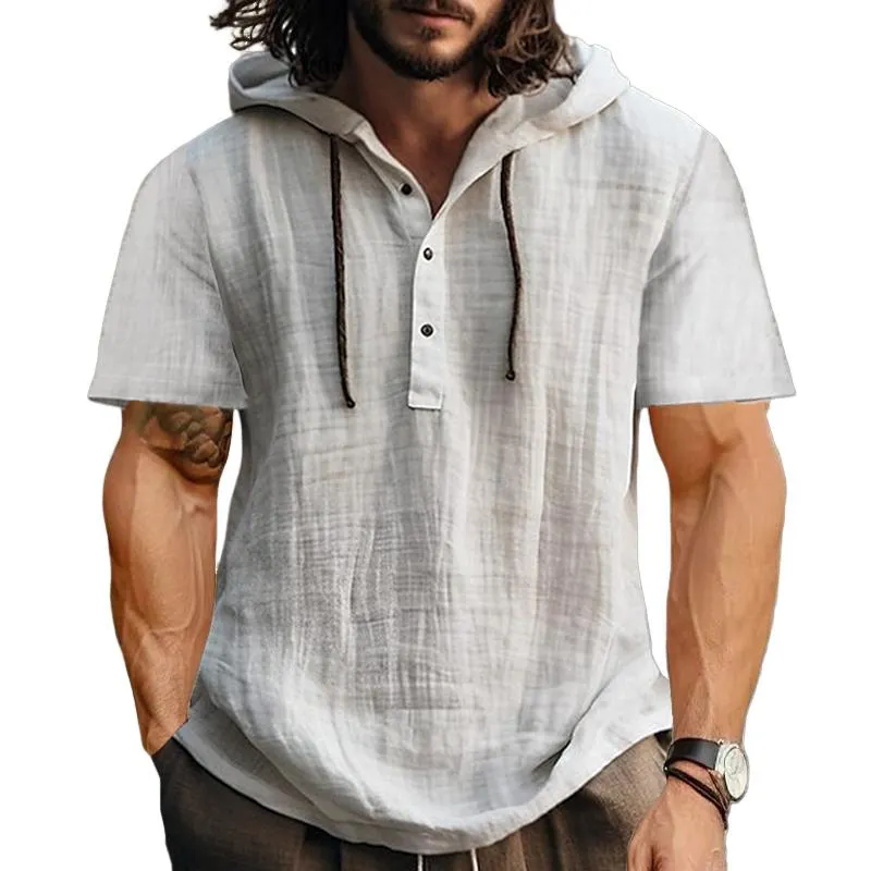 Elevate your casual wardrobe with our Men's Solid Color Hooded Short-Sleeved Shirt – a perfect blend of comfort, style, and versatility for any occasion.