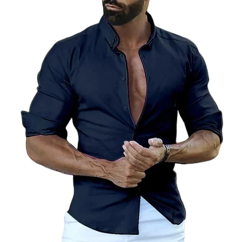 Whether you're dressing up for a business meeting or going for a casual look, this solid color long sleeve button-down shirt is the perfect choice for any modern man.