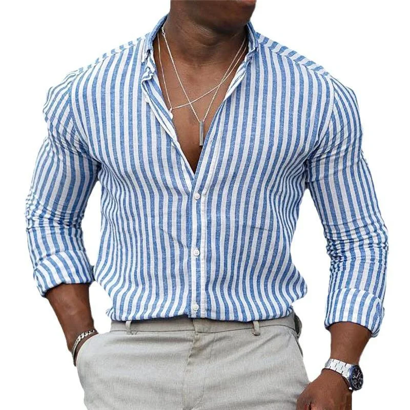 Men's Striped Lapel Long Sleeve Casual Shirt
