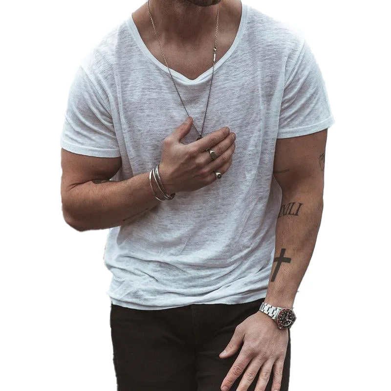 Men’s T-shirt solid color loose round neck bottoming shirt is a classic joker. The thin fabric allows you to see the bottoming shirt a layer under a shirt in spring/autumn or wear it alone to keep cool. There is no reason to limit you from wearing this bottoming shirt.