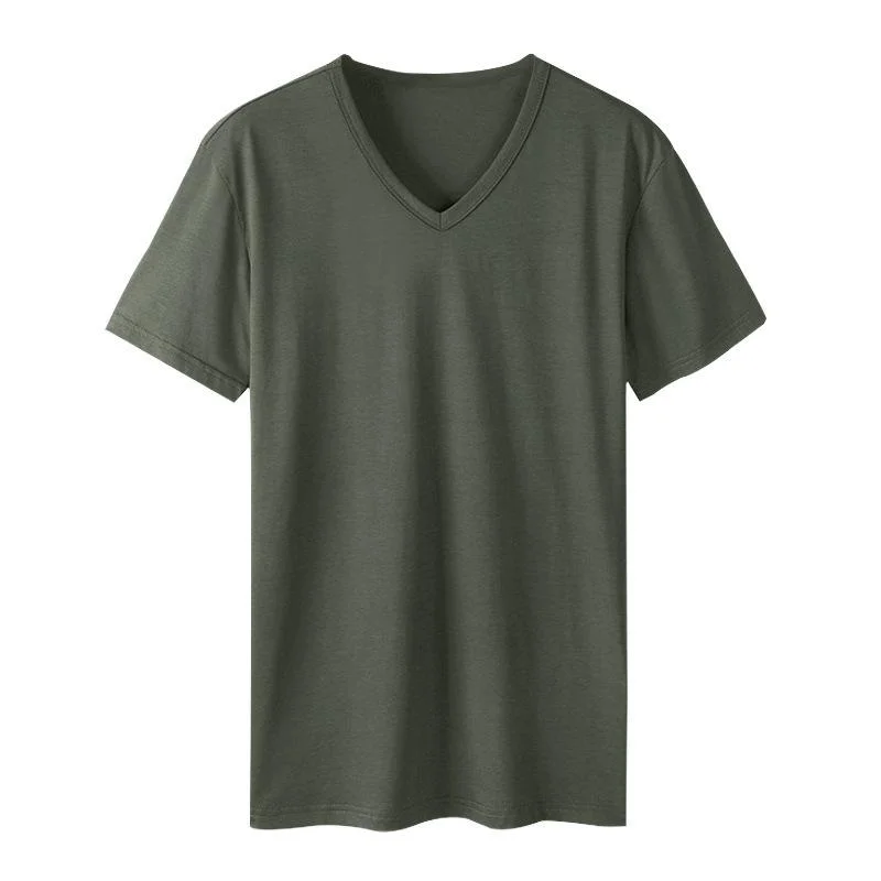 Product Description: Men's V-neck Casual Solid Color Short-sleeved T-shirt