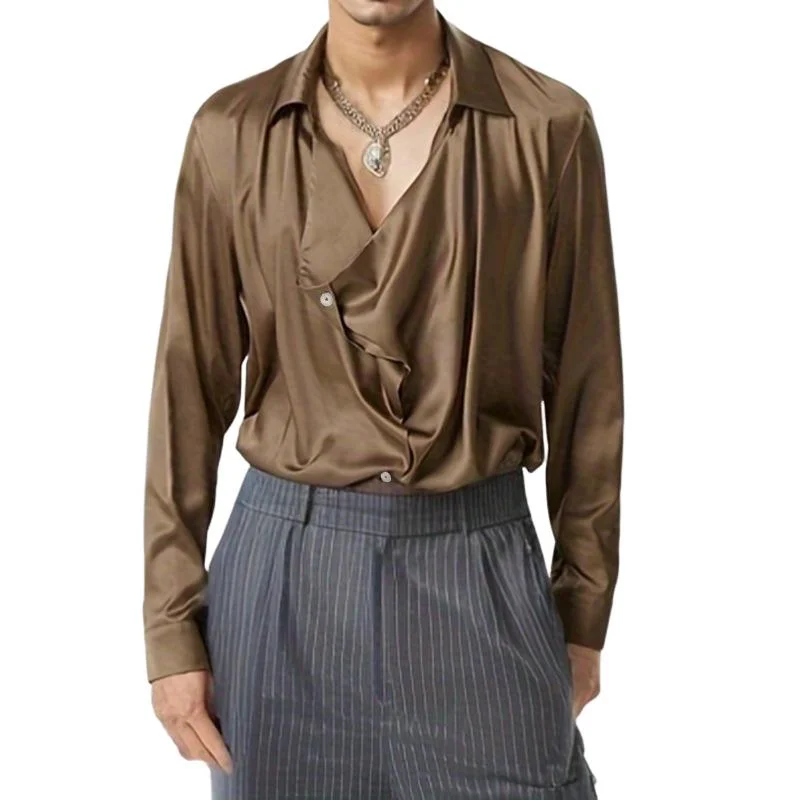 Embrace a distinctive vintage style with the Men's Vintage Light Lapel Irregular Placket Loose Long Sleeve Shirt. This unique shirt combines classic elements with modern flair, featuring an irregular placket design and relaxed fit for a truly standout look.