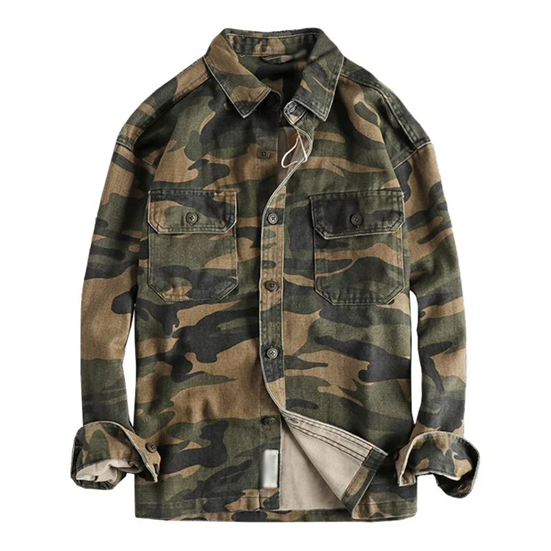The vintage washed cotton, carefully chosen for its quality, undergoes a meticulous weaving process that brings out the unique character of each thread. The result is a masterpiece that captures the essence of a bygone era, where craftsmanship was an art form. The interplay of threads creates a captivating camouflage pattern, making each shirt a one-of-a-kind expression of style.